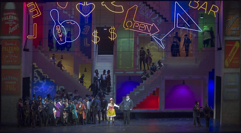 Escena del primer acto de La prohibición de amar, Teatro Colón, 2017