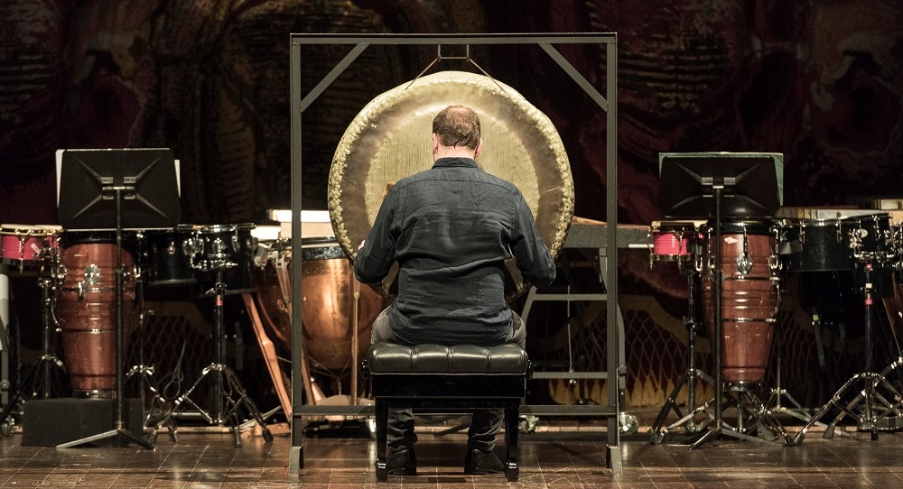 Y en el principio fue el sonido, un trémolo muy tenue de un tam-tam en el centro del escenario del Teatro Colón que fue creciendo, acoplándose a otros cinco tam-tams de diferentes tamaños, distribuidos en palcos alrededor de la platea, que también empezaron a resonar. Ese crecimiento del volumen fue muy paulatino hasta llegar a un sonido ensordecedor, hasta llegarle a uno que le zumben los oídos, con un impacto casi violento en el cuerpo. Luego de ese inmenso clímax, los seis tam-tams fueron bajando el volumen otra vez de manera sosegada hasta llegar a lo imperceptible. Con este gesto sonoro que es la obra Having never written a note for percussion (No habiendo escrito nunca una nota para percusión, 1971) de James Tenney fue como comenzó la segunda propuesta para este año del ciclo Colón Contemporáneo, con la actuación de Grupo de Percusión de La Haya.