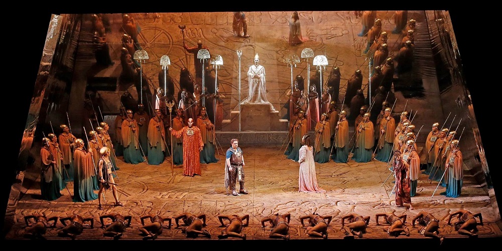 AIDA, ópera en cuatro actos de Giuseppe Verdi. Nueva presentación escénica. Coproducción con el Teatro Real de Madrid. Funciones del miércoles 8* y sábado 11 de noviembre de 2017 en el Municipal de Santiago, Ópera Nacional de Chile. Dirección musical: Francisco Rettig / Pedro-Pablo Prudencio*. Dirección de escena, escenografía, vestuario e iluminación: Hugo de Ana. Coreografía: Leda Lojodice. Reparto: Cellia Costea / Mónica Ferracani* (Aida), Marina Prudenskaya / Guadalupe Barrientos* (Amneris), Paola Rodríguez / Sonia Vásquez* (Una sacerdotisa), Alfred Kim / José Azócar* (Radamés), Vitaliy Bilyy / Cristián Lorca* (Amonasro), In-Sung Sim / Homero Pérez-Miranda* (Ramfis), Pavel Chervinsky / Claudio Cerda* (El Faraón), Rony Ancavil / Claudio Cerda* (Un mensajero). Coro del Municipal de Santiago, director: Jorge Klastornick. Orquesta Filarmónica de Santiago.