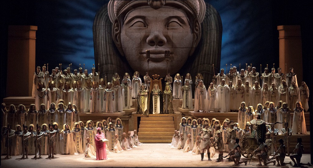 AIDA, ópera en cuatro actos de Giuseppe Verdi. Producción del Teatro Colon 1996. Función del jueves 31 de mayo de 2018 en el Teatro Colón. Dirección musical: Carlos Vieu. Concepción escénica y diseño de escenografía: Roberto Oswald. Director de escena repositor y diseñador de vestuario: Aníbal Lápiz. Escenógrafo repositor: Christian Prego. Iluminación: Rubén Conde. Coreógrafo: Alejandro Cervera. Elenco: Latonia Moore (Aida), Nadia Krasteva (Amneris), Riccardo Massi (Radamès), Mark Rucker (Amonasro), Roberto Scandiuzzi (Ramfis), Lucas Debevec Mayer (El rey de Egipto), Raúl Iriarte (Mensajero), Marisú Pavón (Sacerdotisa). Orquesta, Coro y Ballet Estables del Teatro Colón. Director del Coro Estable: Miguel Martínez. Directora del Ballet Estable: Paloma Herrera.