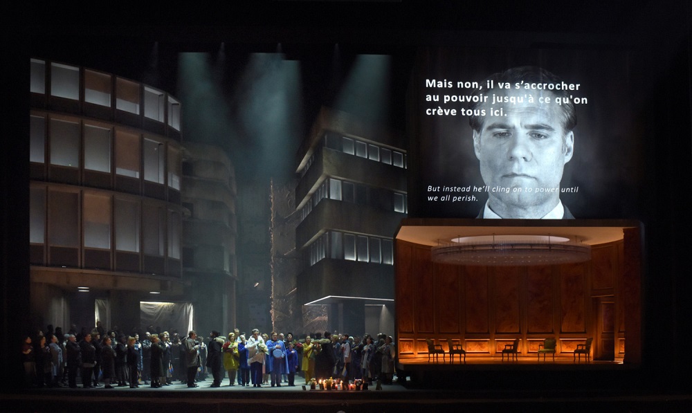LOS TROYANOS, ópera en cinco actos de Hector Berlioz. Función del viernes 25 de enero de 2019 en la Ópera Nacional de París, Bastille. Dirección musical: Philippe Jordan. Dirección escénica y escenografía: Dmitri Tcherniakov. Vestuario: Elena Zaytseva. Iluminación: Gleb Filshtinsky. Video: Tieni Burkhalter. Reparto: Ekaterina Semenchuk (Dido), Stéphanie d |